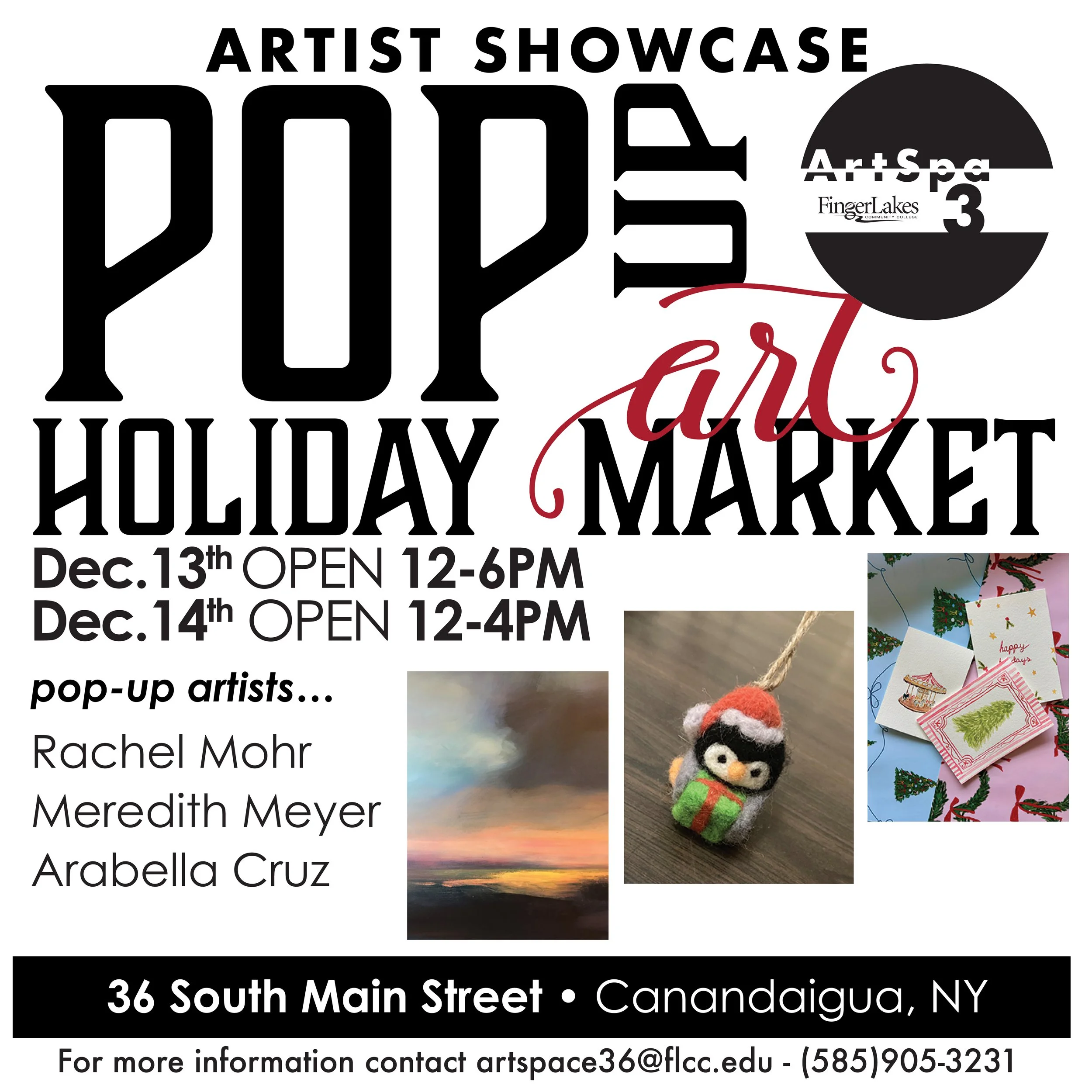 FLCC STUDENTS PLEASE EMAIL artspace36@flcc.edu or call (585) 905-3231 to register!